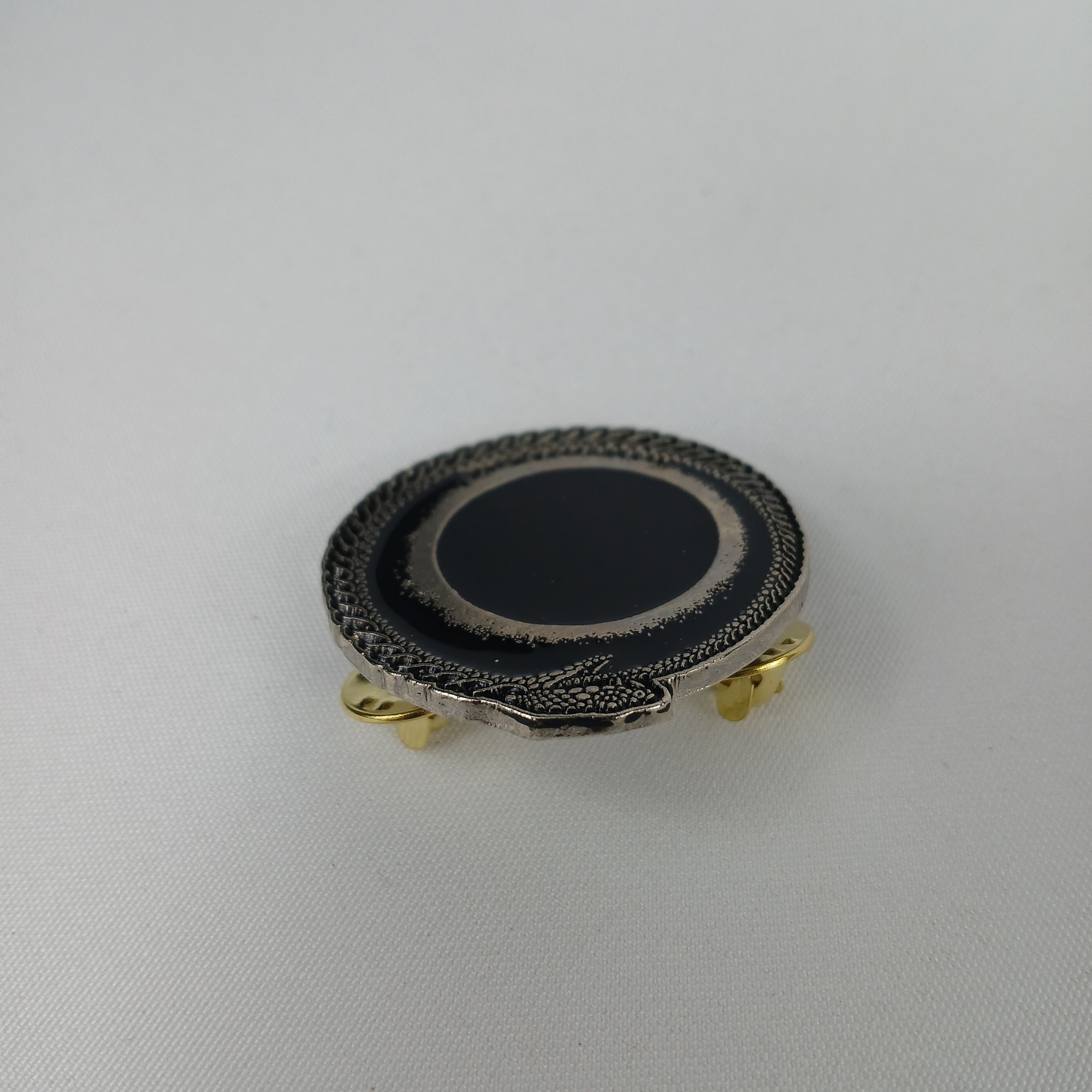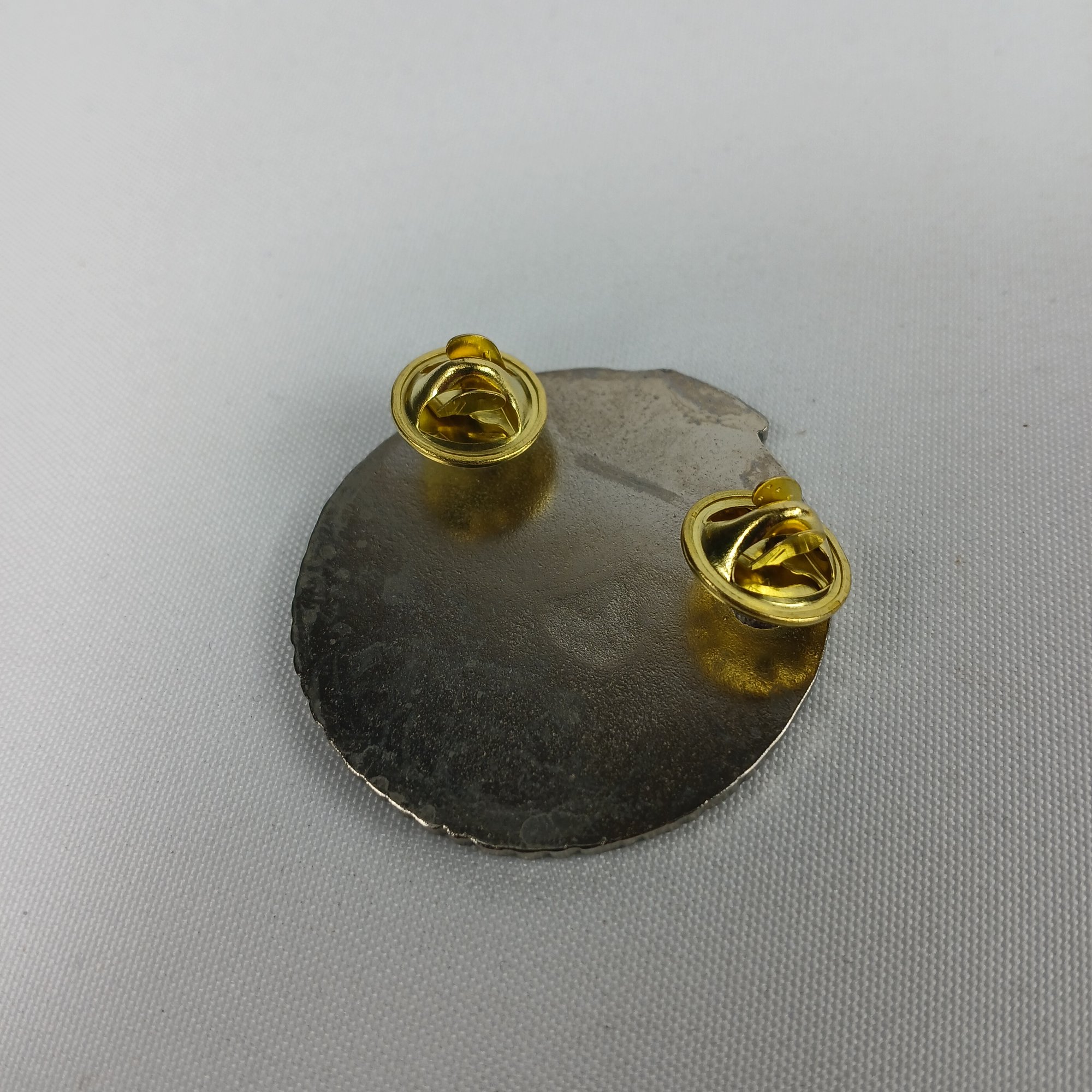 4cm diameter metal clip-on pin/ badge.